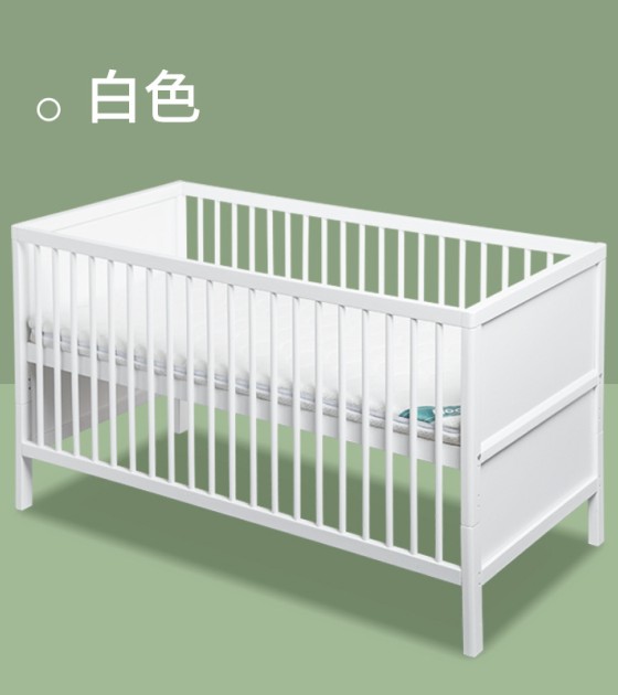 White Nordic solid wood baby bed, pine wood splicing bed, movable baby bed, multifunctional baby bed