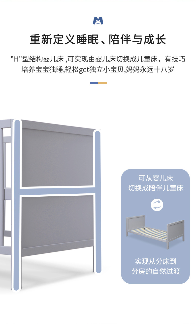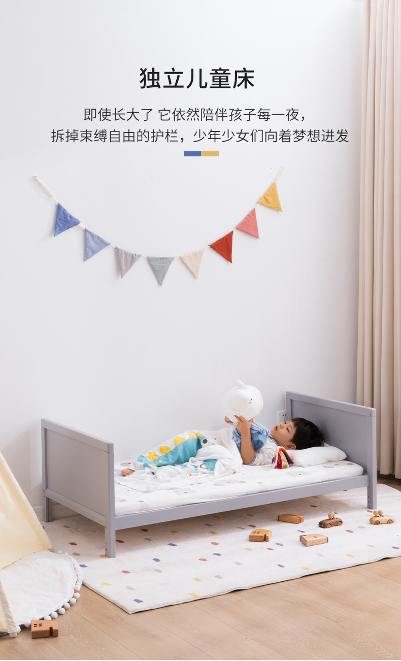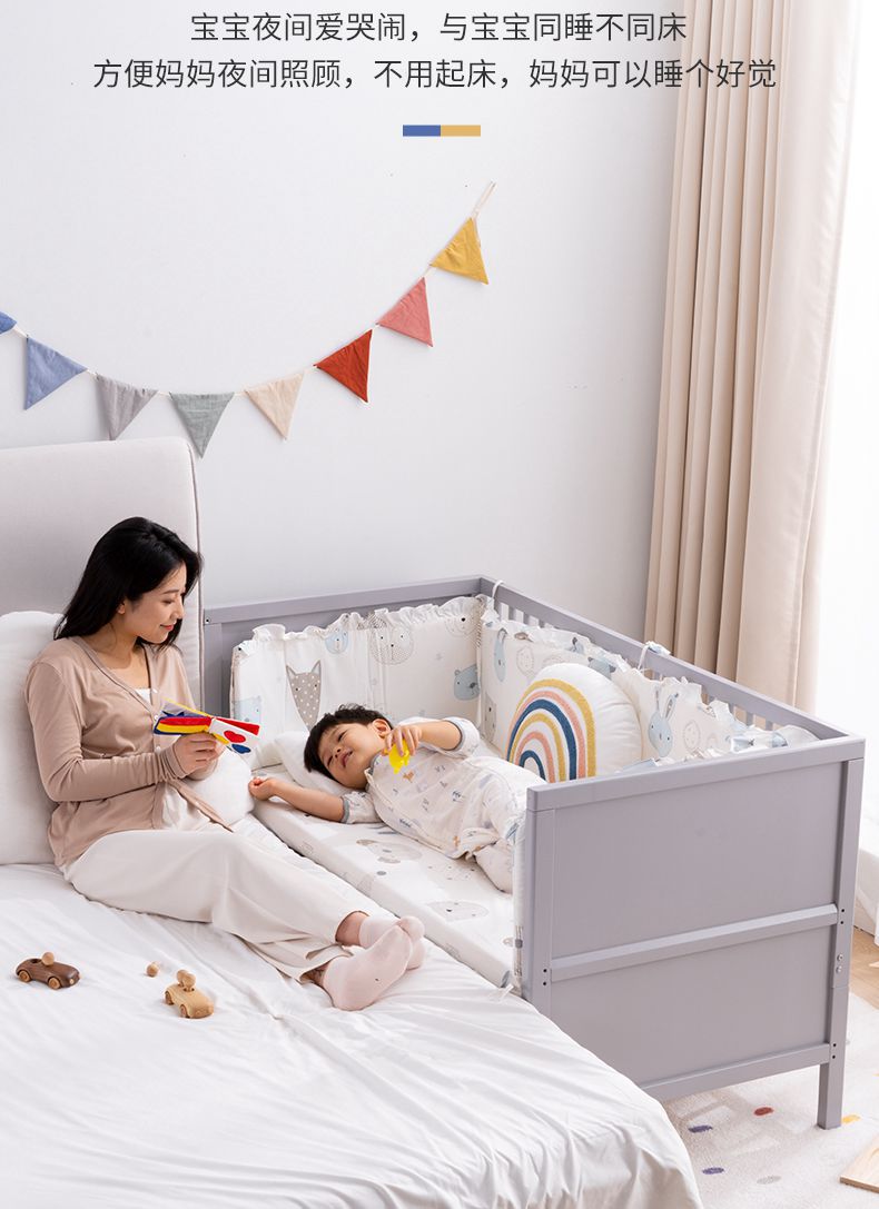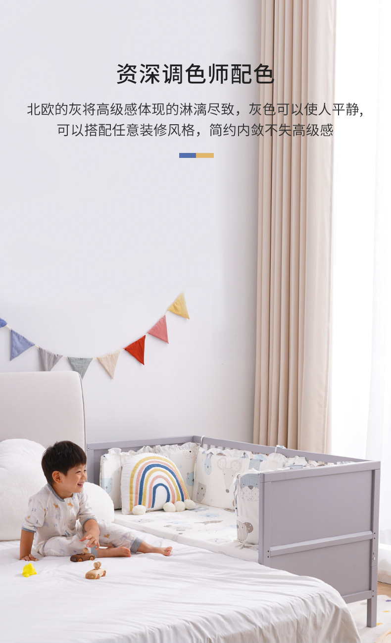 白色北欧实木婴儿床松木拼接床可移动宝宝床多功能儿童床