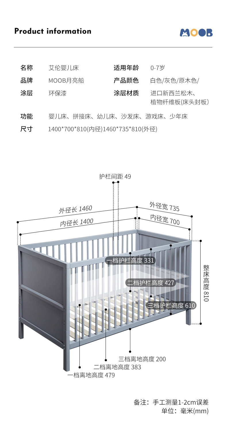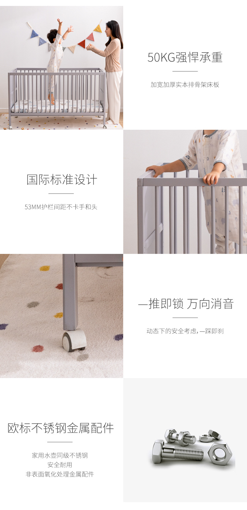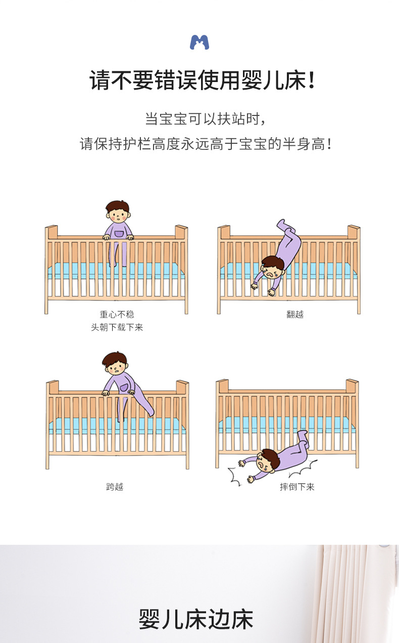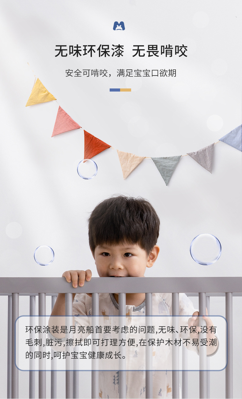 白色北欧实木婴儿床松木拼接床可移动宝宝床多功能儿童床