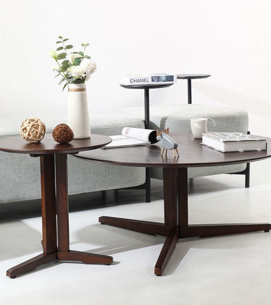 Simple living room sofa, tea table, walnut color, modern minimalist style, small edge table, oak edge table, designer creative furniture