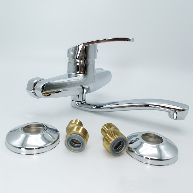 Wall mounted faucet, single handle kitchen rotatable faucet, cold and hot water wall outlet, concealed vegetable basin, laundry sink faucet