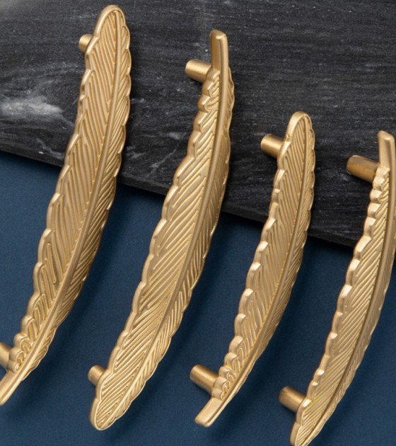 Pure copper handle Cabinet feather gold wardrobe door handle Modern and simple copper handle High grade cabinet door brass handle