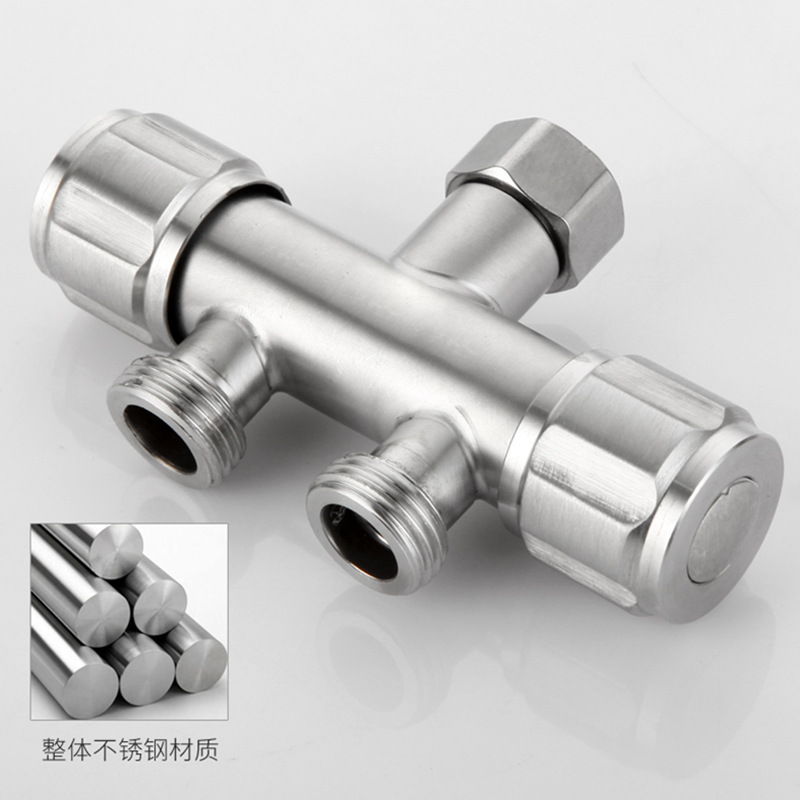304不锈钢洗衣机水龙头分流器 一进二出双出水一分二转接头水龙头