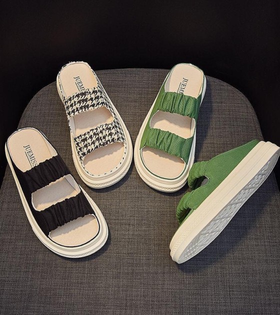 Fish mouth sandals women's 2023 summer new outside wear fashion everything casual slippers elastic canvas flat shoes