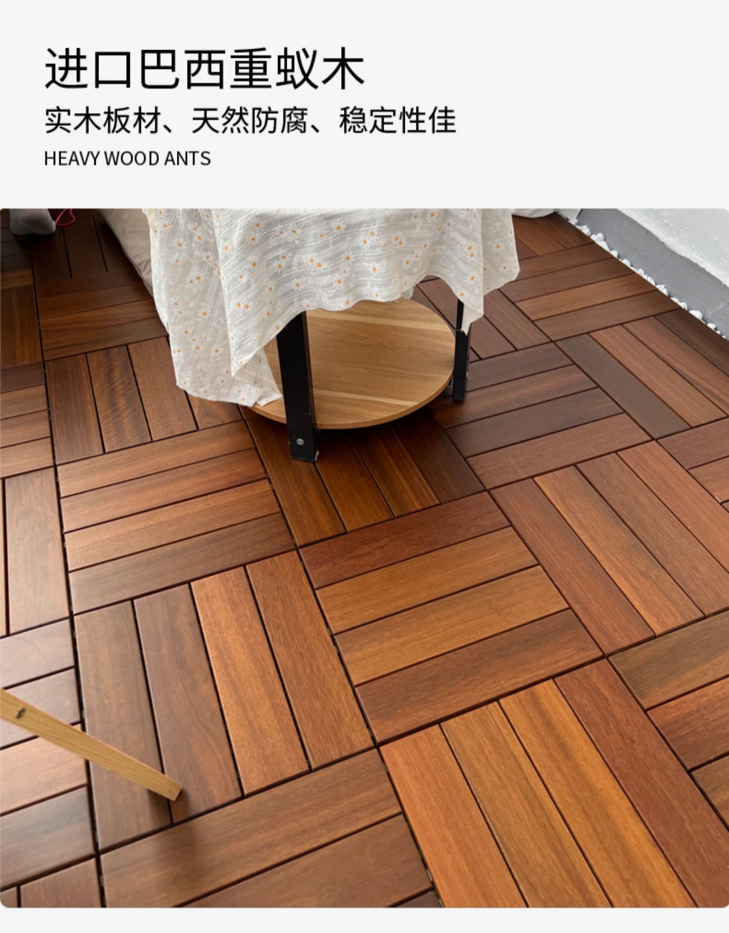 Self paving of balcony floor, laying of outdoor outdoor household renovation, solid wood heavy ant wood anti-corrosion wood floor