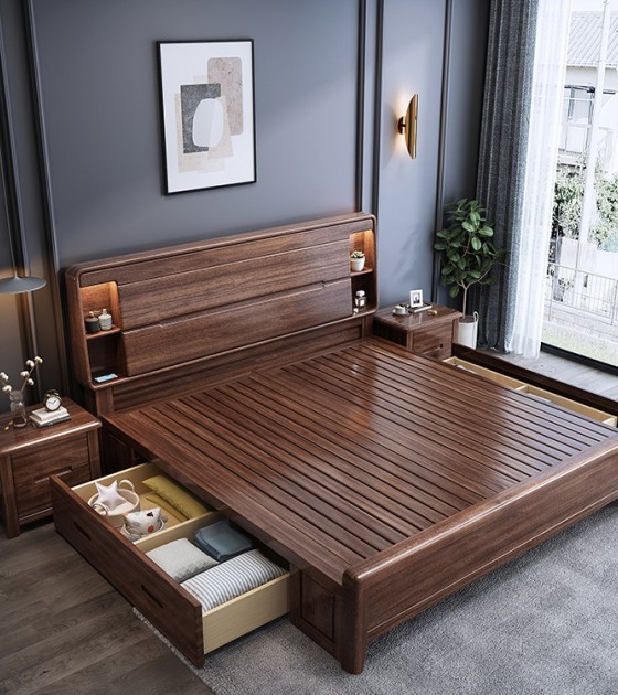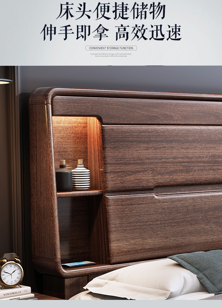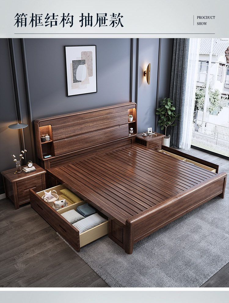 Solid wood bed, modern and minimalist household double master bedroom, large bed, 22.2m, small unit, 1.5m storage, wedding bed