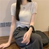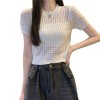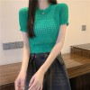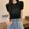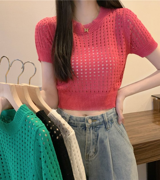 Ice Silk Hollow Solid Knit Round Neck Thin Top