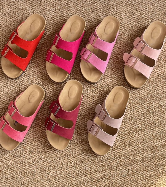 Leather Bocken cork-soled large-sized men's and women's sandals